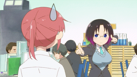 Yay! Elma can stop serving tea and start doing her actual job of programming. Look at Dragon Maid giving us character development and progress. Kobayashi is harsh! Like Tohru, Elma is a high-spec dragon too, you know. Oho. Elma looks precious taking praise. Uh oh. Now Elma gets her complete assignment instead of just serving tea all day. Takiya explained that Kobayashi is the “pillar” of their coding group. Whoops. Elma thinks that word means something else. A duel? For what?