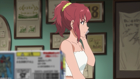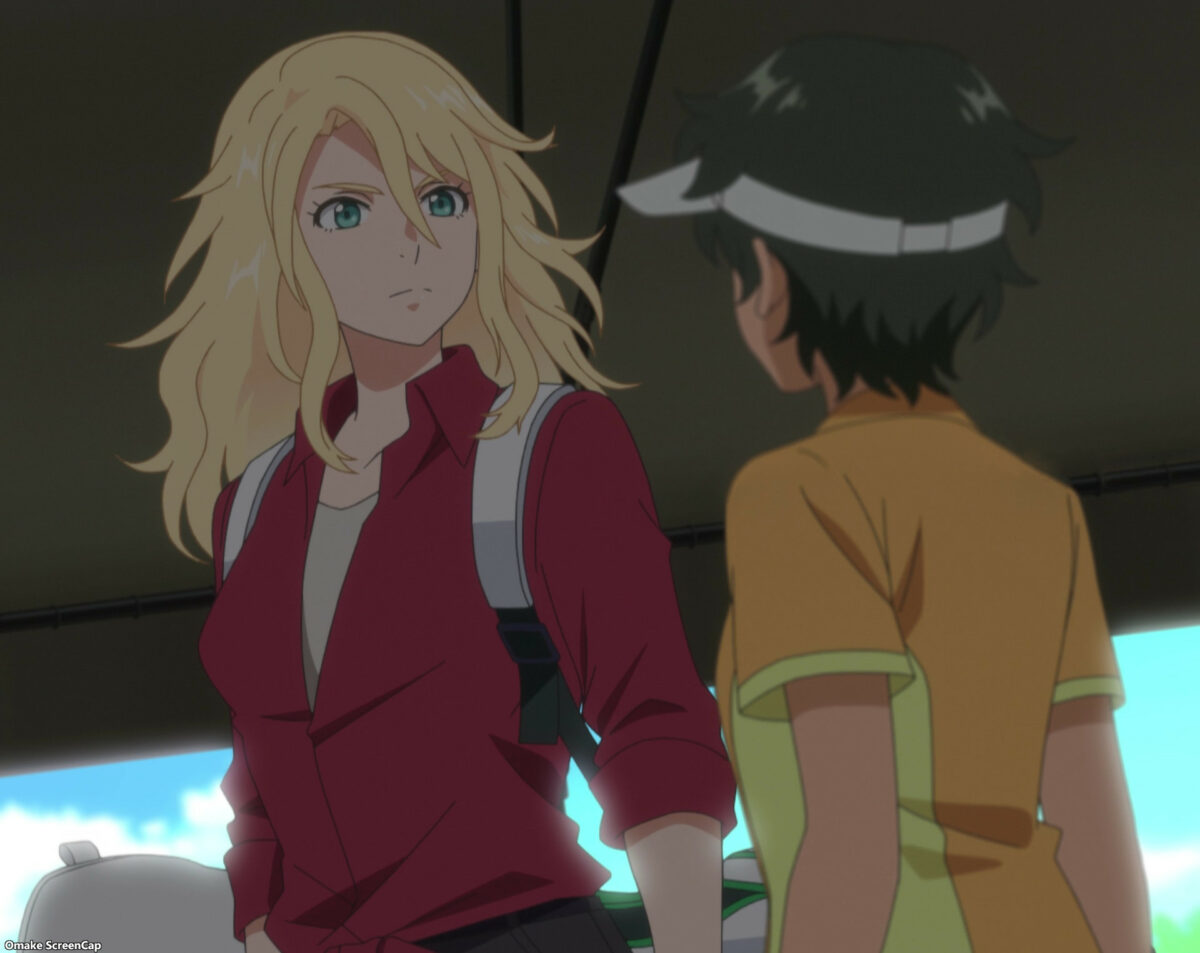 Yay! Eve catches up with Klein and Lily before her golf tournament. Eve sent a Gunpla kit to Lily, but it’s the wrong kind. Is a Shy-Tarn not good enough for her? Eve let the cashier choose that one. She’s like the rich aunt buying you a Transformer you already own for your birthday. For Lily, it’s MG or nothing in Gundam models. Eve has a battle suit too. Outrageously red! Coach Reiya is so permissive. BIRDIE WING places personality above conformity. Haha! Kinue won’t let Eve have Reiya. Lots of subtext flying around on this bus. Har. Ichina needs to explain golf match play rules to Eve. The girl from Nafrece always claimed she wasn’t a golfer. She just hit balls for the money. Hoo! Look at how Eve made Aoi blush. Yuri head pats for the win!