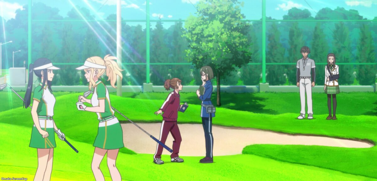 Kaede, Mizuho’s golfing partner, doesn’t like how the All-Japan Girls High School Golf Doubles Championship appears to be an orchestrated debut for Aoi Amawashi. She’s not wrong. Kaede’s recitation of things the audience already knows about BIRDIE WING feels like an anime recap for the middle of the season. Kaede smash! Mizuho just wants strong rivals so she can become stronger herself.