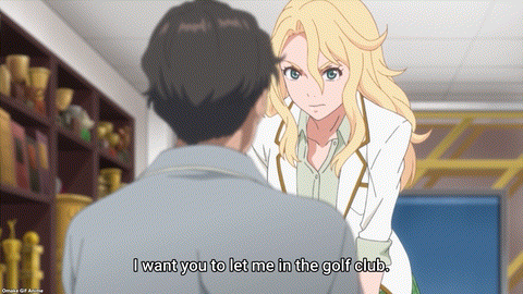 Eve went straight to the golf club to join. Coach Reiya thinks he’s better than Eve. Yeah? Prove it! Ah. The coach has a plan to replace the injured Kinue with Eve. Reiya appears as calculating as Rose in past BIRDIE WING episodes. He wants to provoke Eve’s motivation to play others besides Aoi. What did he do?