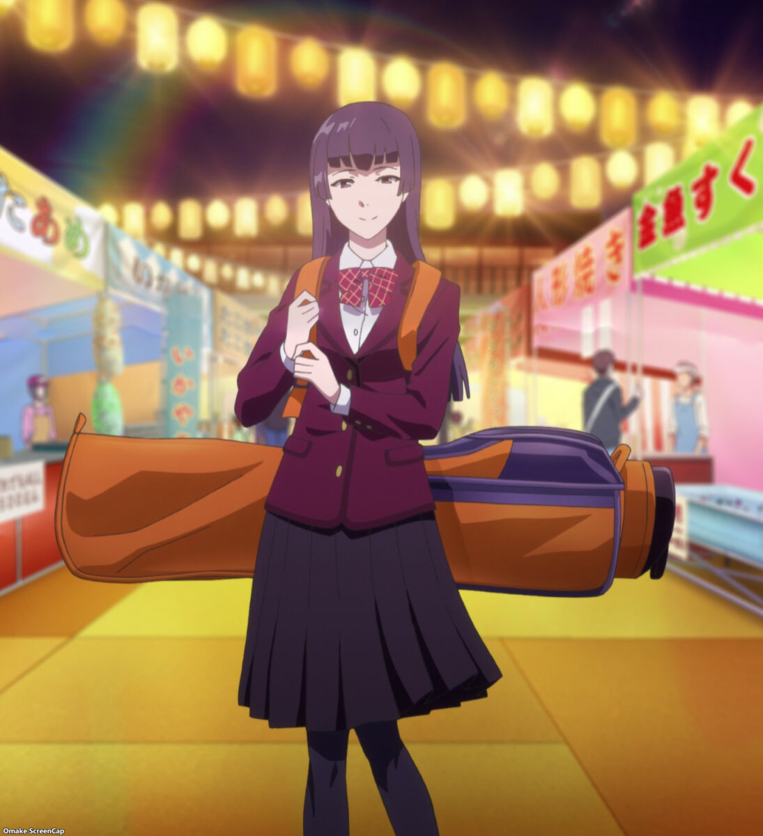 Ichina explains that Eve can live in the dorms once she joins the golf club. Eve has other ideas. Shacking up with other girls. She’ll pierce their hearts straight through! Ichina calls Eve a lady-killer and a mad dog. That’s a deadly combination for an all-girls school! After-school date montage with a 90’s vibe music soundtrack. Bandai Namco needs to sell music through BIRDIE WING. Aw. Over too soon. It’s just Eve and her stalker now. Er, future caddy.