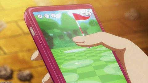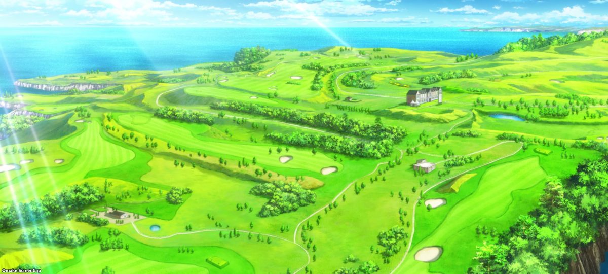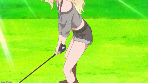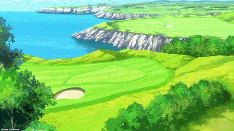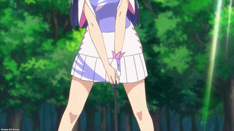 Amane claims that Aoi has a third gift for playing golf: enjoying it and not feeling any pressure. Aoi’s innocent smile crushes opponents. Hey, that sounds like Eve’s strategy of piercing a rival’s heart to demoralize her. I see what you’re doing, BIRDIE WING. Usually, a fade has a backspin, so the golf ball doesn’t roll far after it lands. But Aoi used the hole’s topography to roll down a hill.