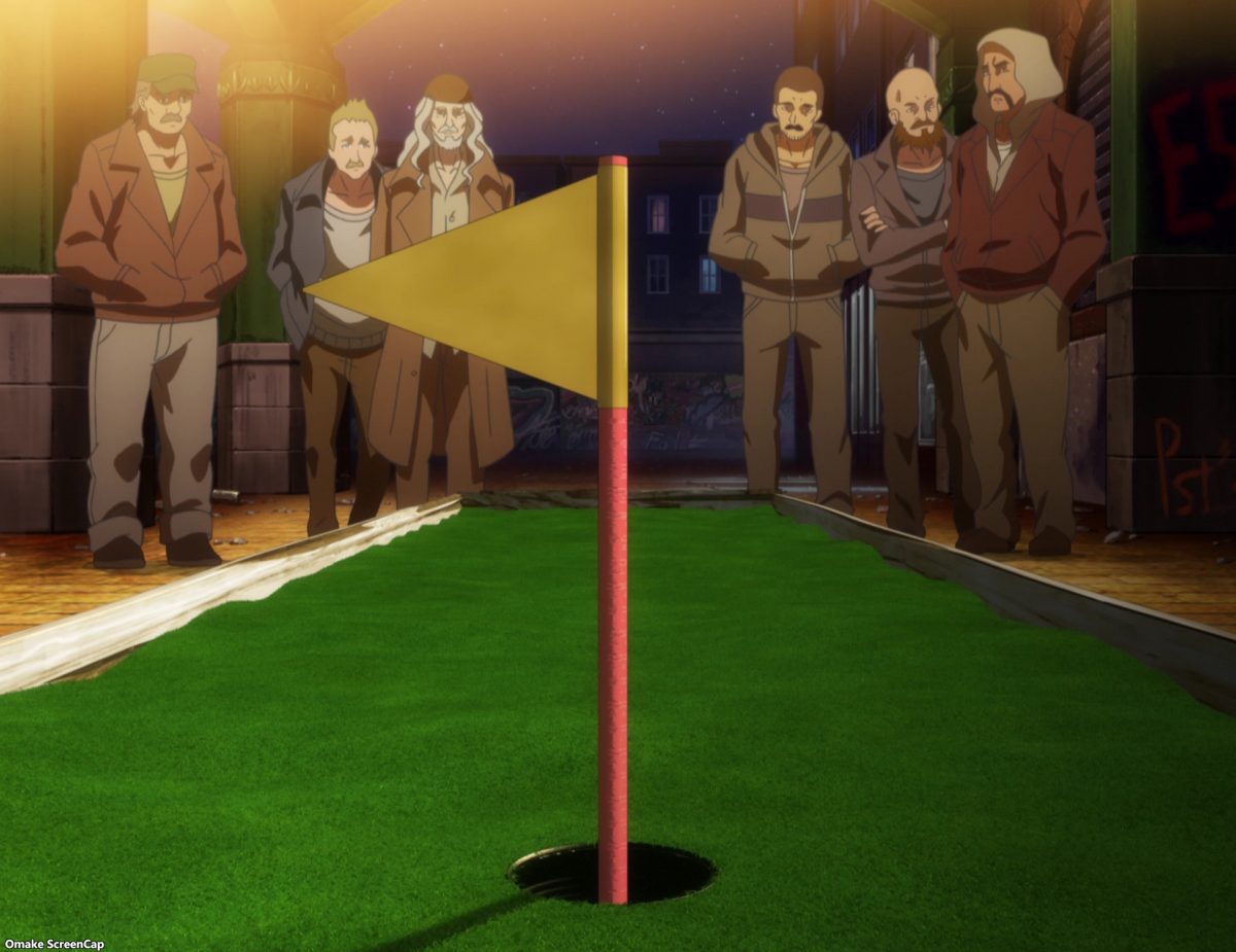 And suddenly BIRDIE WING is on the Southside of Nafrece. Oh! This is street-hustle golf. With a portable putt-putt hole! Anri’s magnet app looks like a mini-game inside a golf video game. Use magnets to guide the ball to the cup! Ahahaha! Green Bullet for Eve, no matter how short the distance is. The golf ball went too fast for Anri to tap her magnet app. You can’t golf-hustle a hustler! “Same line of work,” Anri said. Ah. Eve wanted a meeting with the Boss of golf hustling.