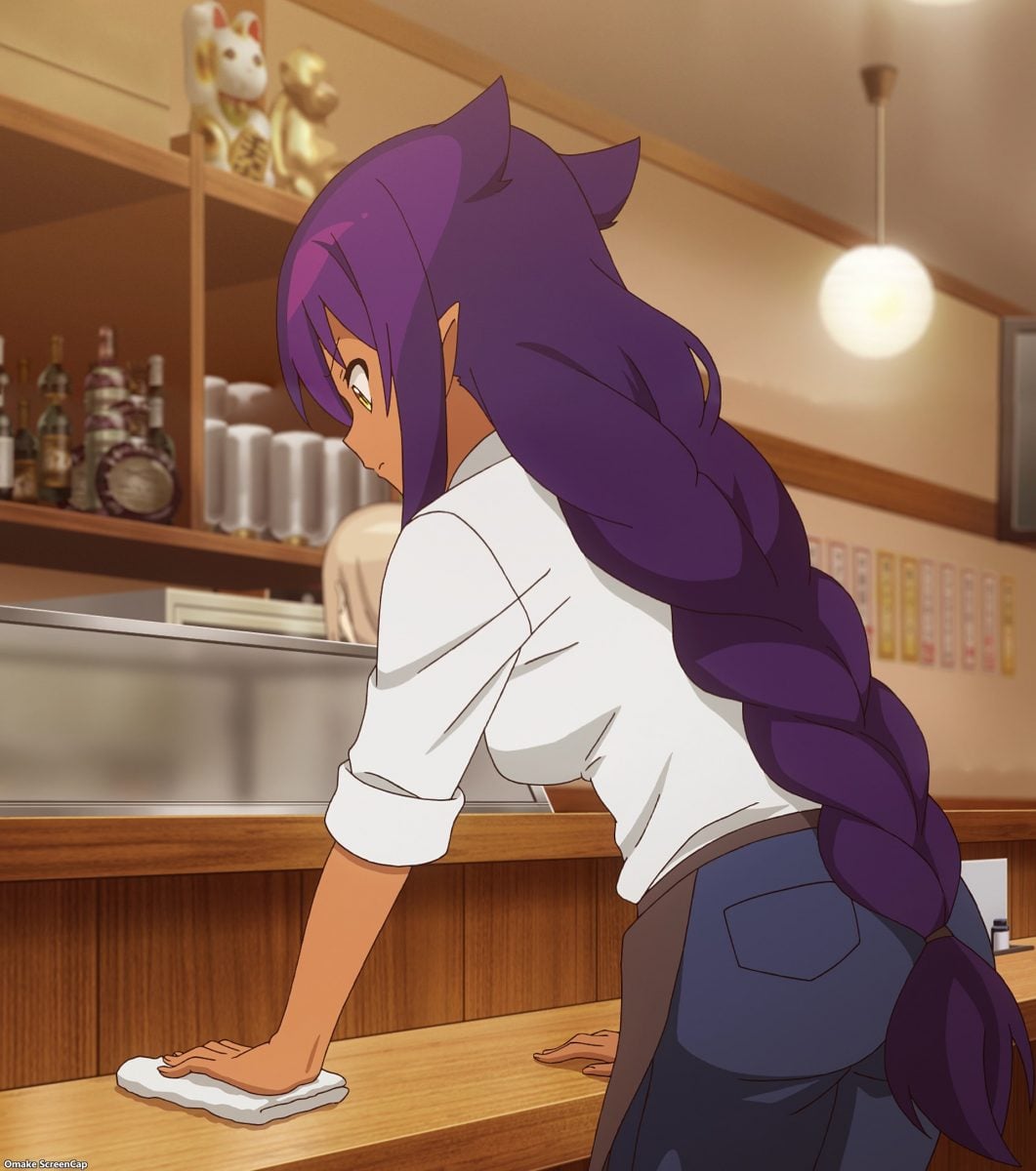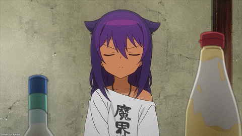 Here we go! Jahysama transformation! She needs this short-lasting form to… serve beer! Is this the perfect show? Yes. Yes, it just might be. Ooh. A calm, gentle big sister type. Har. The bar’s name is Maou (demon lord). Adulting is hard… The Store Manager is too kind. Jahysama learns to smile for money.