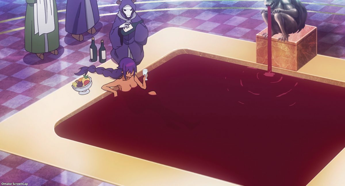 Jahysama is poor. She bathes in a bucket on the floor. Pathetic! She used to live like a queen. She had magical power. She soaked in red wine! The Great Jahy was the Dark Realm’s second-in-command. But a magical girl flew in and destroyed her large magic crystal. The magical girl has two moles under her eye. We’ll see her again. The Great Jahy was no longer so great. She landed in the gutter in the human world. Quick summary!