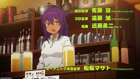 Starting right off with the opening credits. Spoilers! The Great Jahy shows us all the characters from Jahy’s past coming to the human world. Dark-skinned beauty serving beer! Busty, kind-faced big sister! Ara, ara! Chibi Jahy is still no match for the overpowered magic girl. Ooh, there are scenes for wrestling fans! That was a catchy pop song from Yui Ogura and KIKUE.