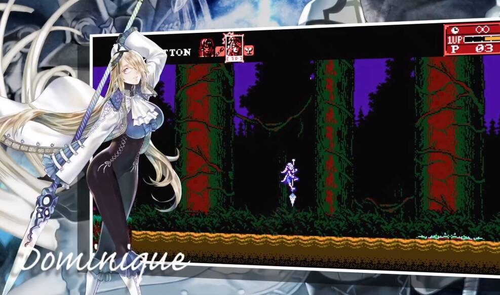 The katana-wielding samurai, Zangetsu returns with, to a bit of surprise, Dominique, whom we saw in Ritual of the Night. The developers have traded her nun appearance for that of a spear-twirling exorcist capable of offensive magic, and even healing spells. New characters include the gun-slinger, Robert, and magic armor pilot, Hachi.