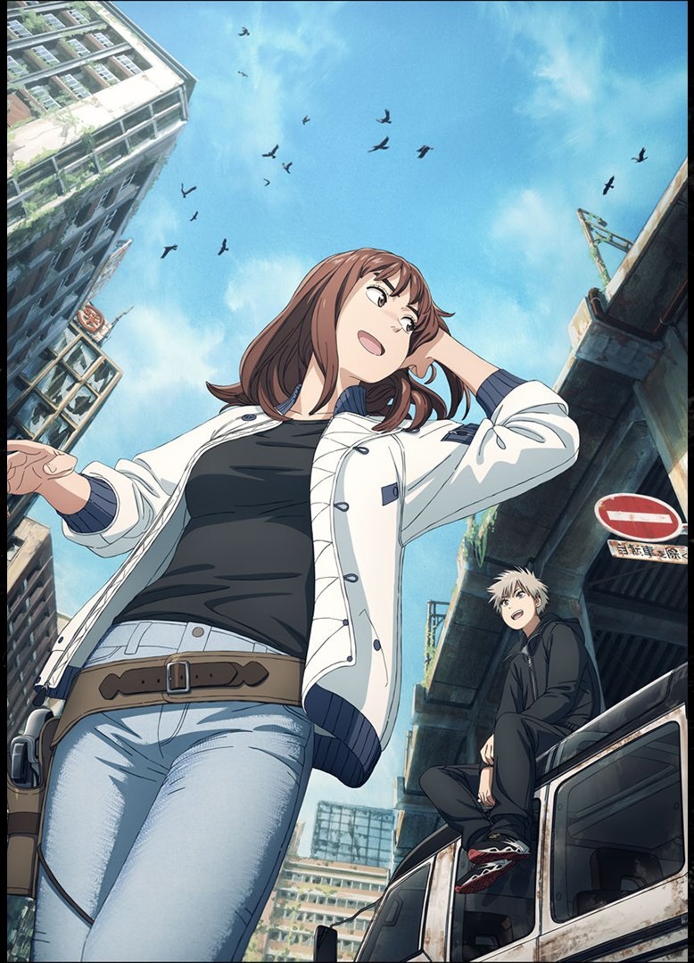 Heavenly Delusion depicts a world that is barely hanging on by a thread. Fifteen years ago, an unprecedented disaster brought everything to ruin. People try to get by any way they can, but it’s clear that there’s little hope left. People like Maru and Kiruko travel through what’s left of Japan, searching for “Heaven” (a place considered a sanctuary) while avoiding nightmarishly powerful monsters. Thankfully, they seem to be well-prepared and able to survive attacks.