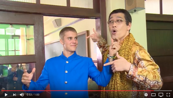 Justin Bieber, international pop star, appeared in a teaser trailer recently to promote the Japanese phone company, Softbank and their new student plans with DJ Piko-Taro, the singer of the strange, yet popular song: “Pen-Pineapple-Apple-Pen”, which took the world by storm this past August. Piko-Taro has even collaborated with one of the most popular Death Note characters, Ryuk!