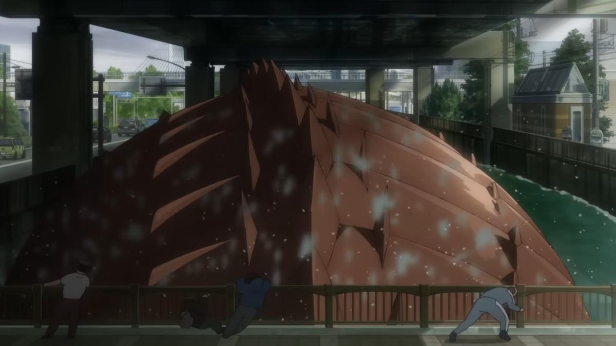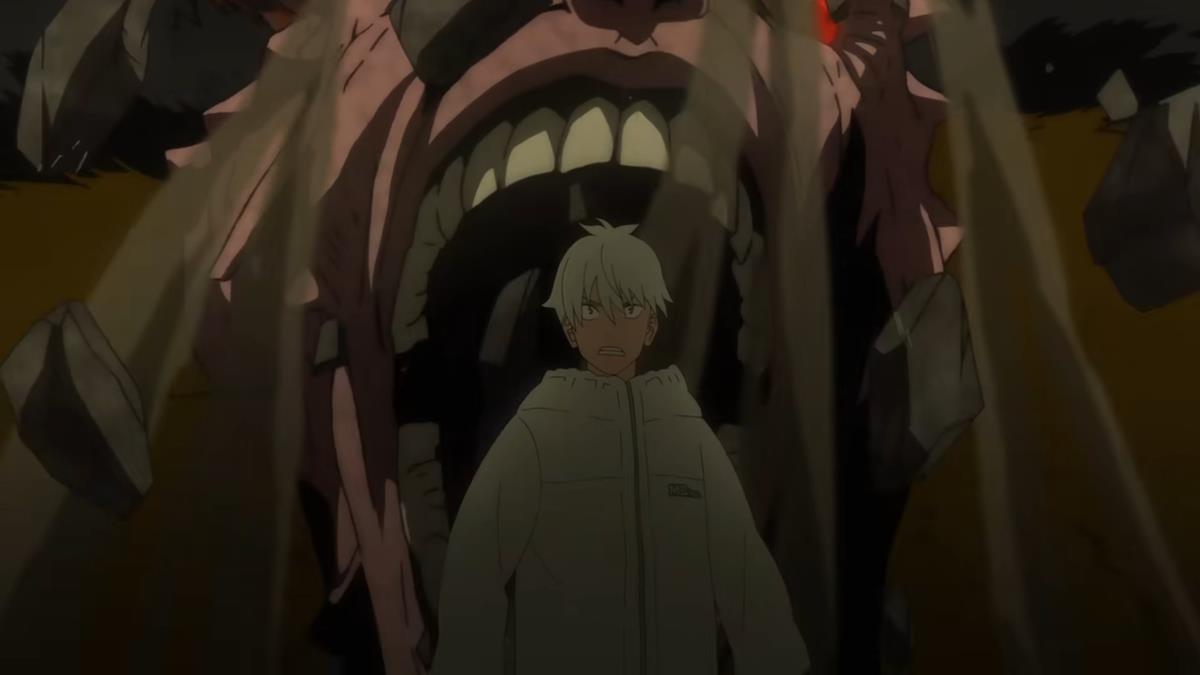 Kaiju No. 8 is set in a world where kaiju walk the earth and threaten humanity. The Defense Force was formed to protect people and slay these dangerous monsters. Kafka Hibino (Masaya Fukunishi) and Mina Ashiro (Asami Seto) are childhood friends who promise to rise through the ranks to eliminate kaiju and protect their homes when they grow up. Things evidently don’t quite work out that way.