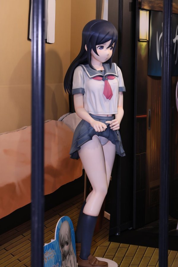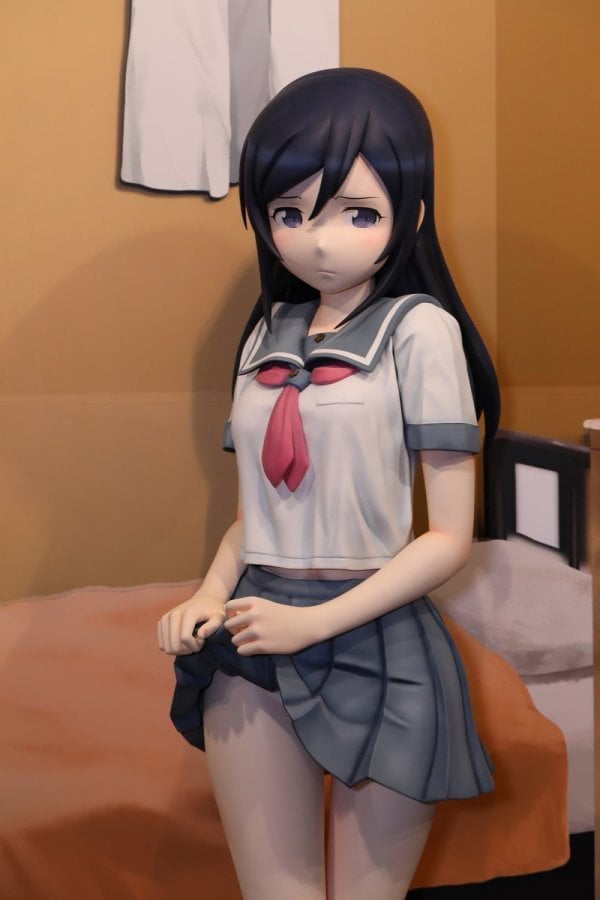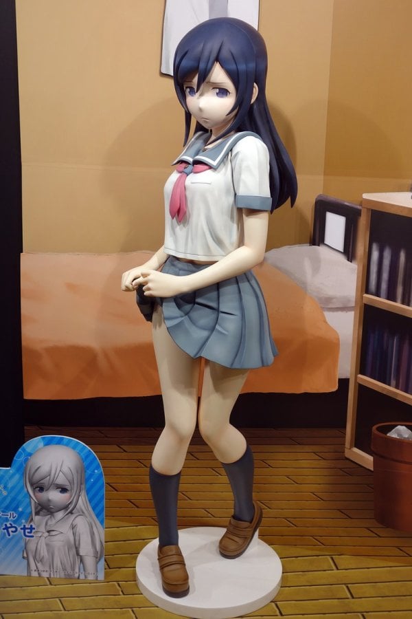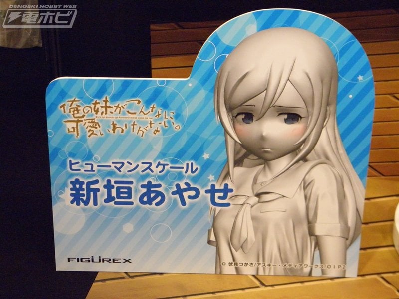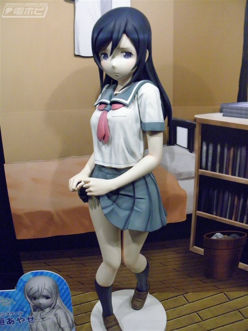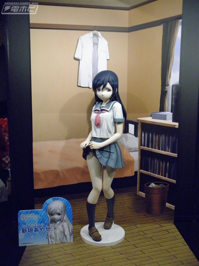 Last September a life-sized statue of Oreimo‘s Ayase Aragaki was revealed in celebration of Tsukasa Fushimi’s 10th anniversary since his debut as a light novel author. During the Winter Wonder Festival 2017 event Pulchra revealed the life-sized figure on display inside a recreation of Kyosuke’s room while slightly lifting up her skirt.
