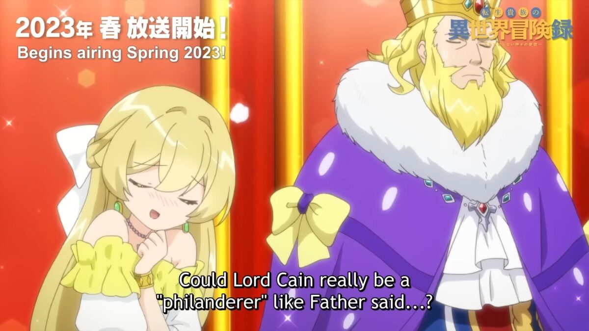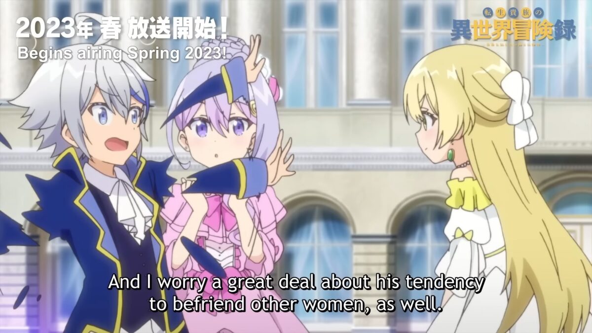 Ahead of its Spring 2023 release date and a month after fans were briefly introduced to some of the main cast of The Aristocrat’s Otherworldly Adventure with a very short teaser trailer, the production studios released a proper trailer. Not only are potential viewers given a better look at Cain and the different women surrounding him, but Cain is able to show off his divine-blessed skills in combat.