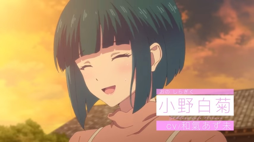 Though The Café Terrace and Its Goddesses anime adaptation was announced a couple of months ago, fans hoping to see more were given a special treat: a character trailer for Shigariku Ono, one of the goddesses working at the titular café, released in advance of its April 2023 premiere. The trailer shows different sides of Shigariku, displays her likes and dislikes, and reveals her eye-catching three sizes. It’s clear the fine animators at Tezuka Productions want her to be the best girl of the series.