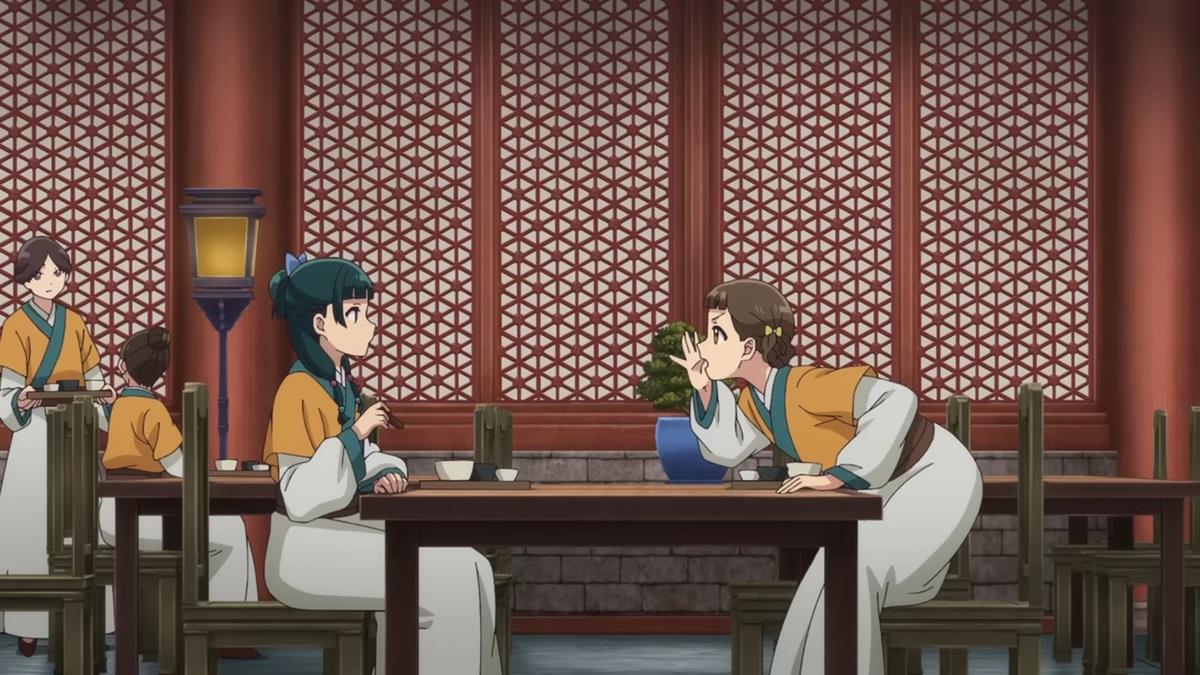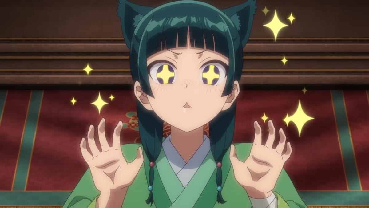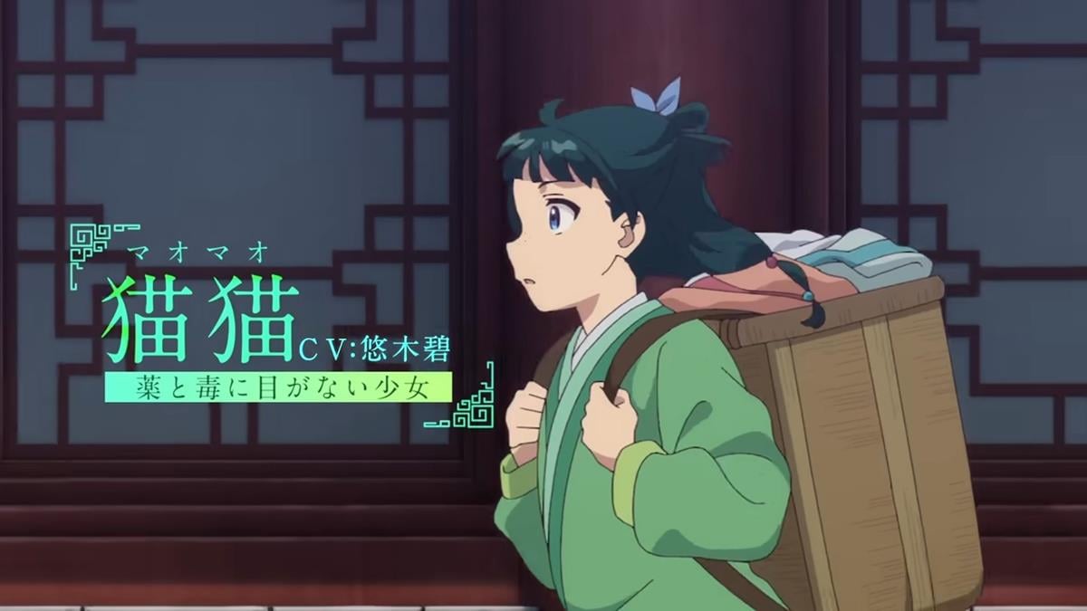 • Maomao — Aoi Yoki (Tsuyu Asui in My Hero Academia) Kidnapped and sold as a slave in the harem quarters, Maomao rose to become Jinshi’s confidant. She is a highly skilled apothecary with a keen eye for detail.