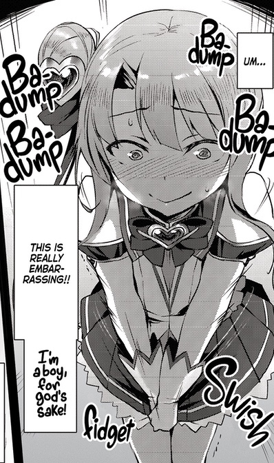 Akari’s friend Yuzu discovers the changes in her and immediately jumps into action to help her. He’s surprised when he is transformed into a magical girl himself! At first he’s got his boy parts intact, allowing for some fun sexy shenanigans, but as he battles on, his body becomes fully female, making this a great nyotaika (male to female body transformation fetish) story.