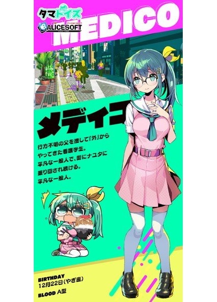 Then there’s Medico, a girl with cute twintails who sometimes wears glasses. She’s a shy girl who left the safety of her family’s home to search for her missing father. In the game you must find her and recruit her as a prostitute…could you do such a thing?
