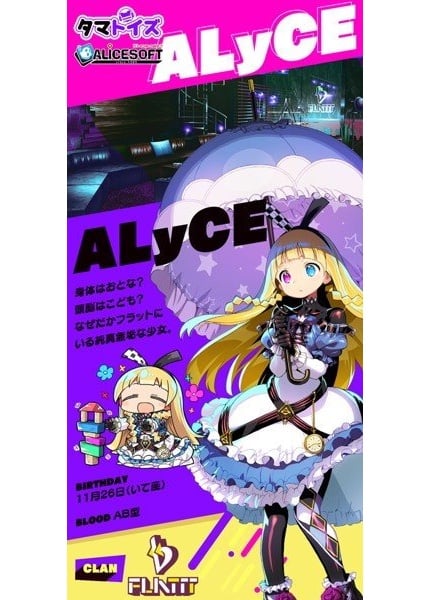Finally we have ALyCE, a super cute girl who dresses on goth-loli fashions and has a grown-up body but a mind that’s as pure as the driven snow.