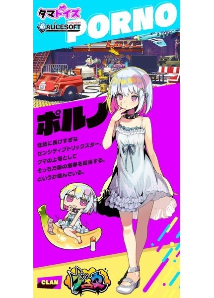 Next up is a mysterious girl who loves cosplay name of Porno who is an “erotic specialist.” She loves cosplay and sometimes wears an eye patch because it makes her look more moe.
