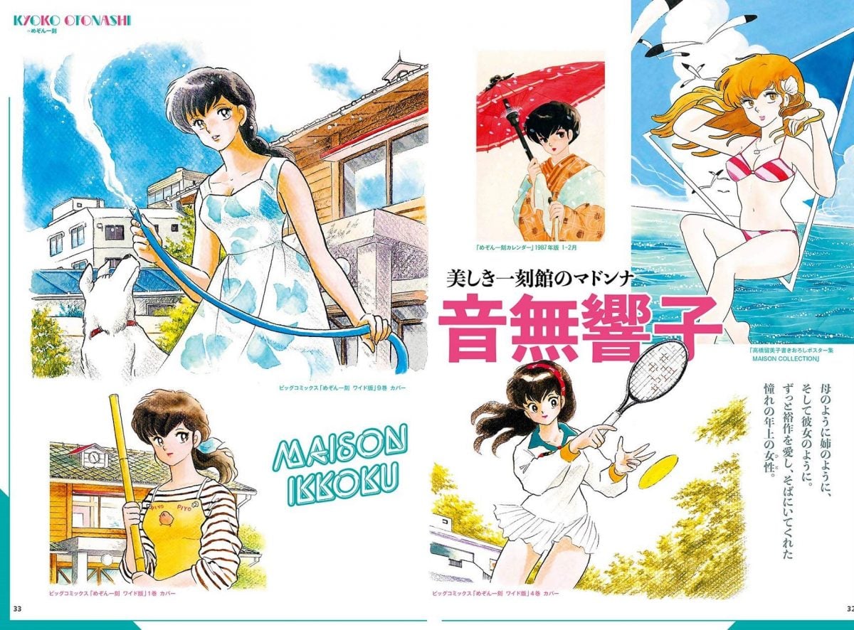 The book is a 完全保存版 kannzen hozon-ban or keep-forever collectible data book filled with visuals and data on the best manga and anime heroines of the 80s. It starts off with information and beautiful art of Madoka Ayukawa and Hikaru Hiyama from Kimagure Orange Road, then moves on to to the other beloved characters of the era: Kyoko Otonashi from Maison Ikkoku — another show that affected me deeply as a fan — plus Lum from Urusei Yatsura, Minami Asakura from Touch, both Miyukis from Miyuki, Stop! Hibari-kun and more.
