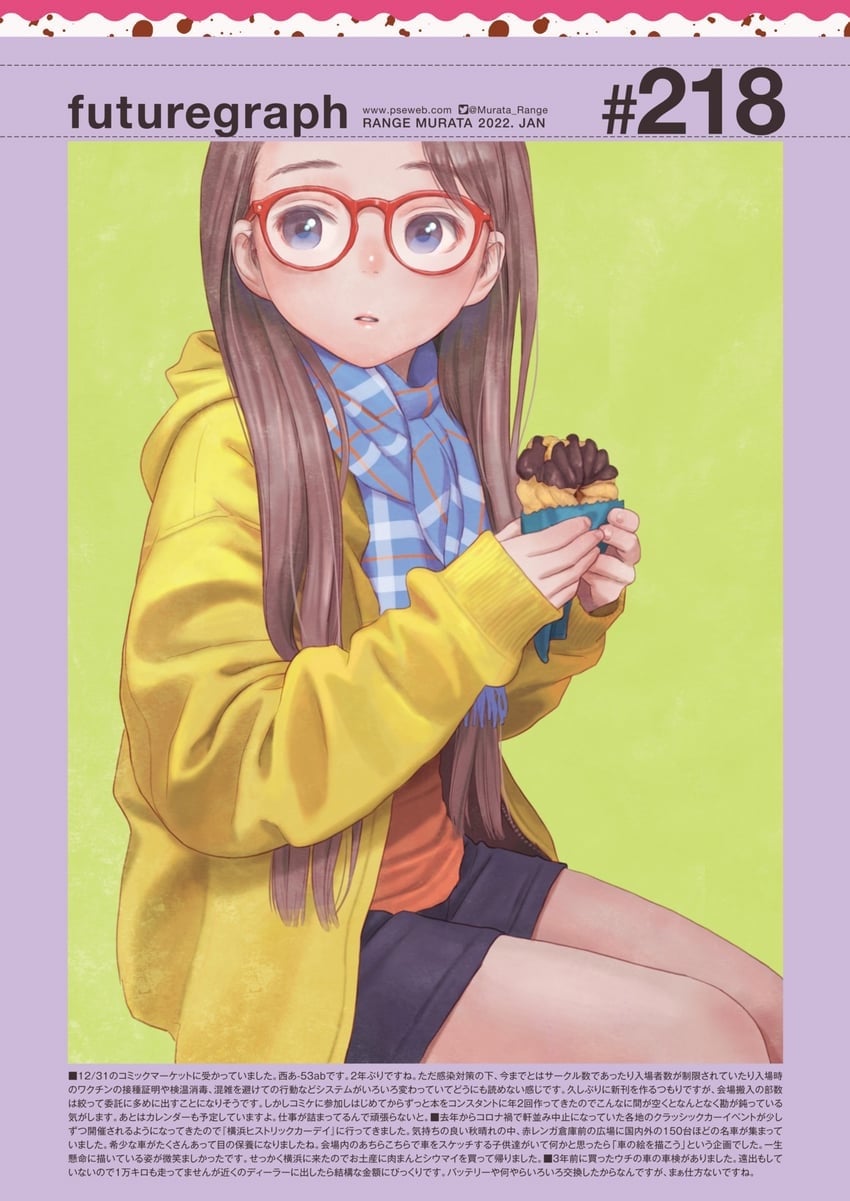 Let’s look at some of the illustrations inside his Winter 2023 offering. Naturally, we get…cute girls, as only Range Murata could design them. He always works technology into his illustrations, too.