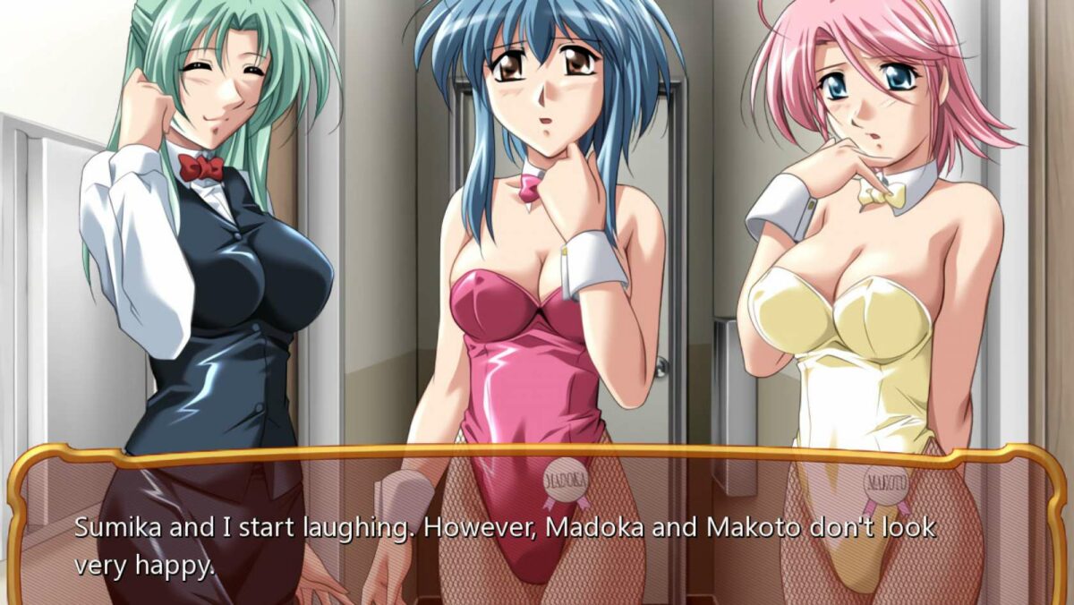 Do You Like Horny Bunnies? is a self-explanatory title since both visual novels are about horny bunny girls who throw themselves at lucky guys. There’s romance, but there’s an actual plot involved, even if both titles jump right to the sex from the first couple of minutes. The plot (not just the bunny girls’ PLOT) is actually good. It’s not something to skip over between sex scenes. The characters are fleshed out (and not just what’s beneath the bunny girls’ suits). You come to pick favorites, either the cool beauty who seems like she hates men or the boss who jumped your bones within minutes of meeting you.