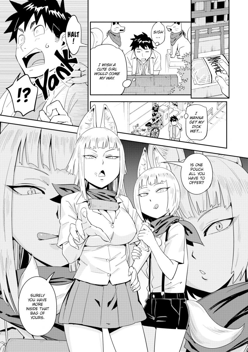 One of my favorite chapters that best illustrates the perfect blend between comedy and sexiness in Love Style is the final chapter, titled Juicy, Beastly Guardian Foxes. In this story, a young man is walking home after shopping for food at a local convenience store. On his way home, though, he passes by a nearby shrine adorned with two beautiful fox statues. He lays some food down on the shrine as an offering and solemnly wishes for a cute girl to come help him get his dick wet. As he sighs and turns to leave, he’s stopped by a bust fox-girl and a petite fox-boy who scoff at him only having one pouch of food to offer, and reveal themselves to be the spirits of the shrine. He decides to bring the fox spirits to his home to make some food for them, and while they initially dismiss his fancy tofu and laugh at his instant ramen, they eat both and end up absolutely loving it, stuffing themselves with all of his delicious food. In return, the curvy fox girl offers to let him feast on either of them, but when our protagonist admits that he isn’t into boys, the smaller fox reveals that they’ve taken on a petite, female form after some pranksters broke off the manhood from their statue. With that settled, the two fox girls pay back their gracious host with an evening of wild, heavenly sex.