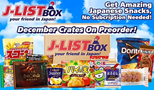 Our new monthly J-List Box snack, toy and ecchi boxes are a huge hit, and were happy to announce that we’ve got the boxes for December up on the site now! This month’s boxes are great, with two delicious snack boxes, a limited Studio Ghibli box, plus an awesome error box for everyone. These boxes ship out December 7th. Order yours now!