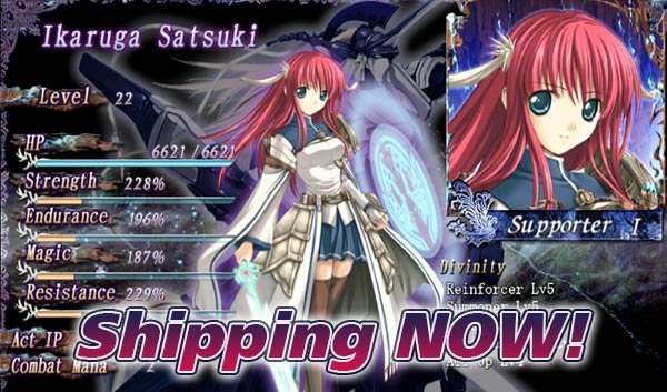 Our great news is that Seinarukana – The Spirit of Eternity Sword 2 is in stock and shipping now! A sequel to the popular Aselia the Eternal, Seinarukana is a full-fledged JRPG with awesome 3D maps, dungeon crawling and combat, plus great detailed stories with the game characters. It’s the best 18+ RPG ever ported! Order it now!