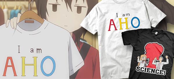 J-List has been making fun anime and kanji T-shirts for years, and we’ve got some fun new designs for you, including a YuruYuri “I am Aho” (I am stupid, in Osaka-ben) shirt and the classic Science! parody design. Browse all our awesome anime shirts now!