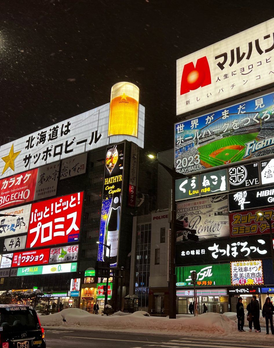 Being from San Diego, I have a natural love of snow, because it’s something I rarely get to see. I was absolutely floored by the amount of snow I’ve been greeted with here in Sapporo, though. Every two-lane street is basically transformed into a single lane because there’s a six-foot-high wall of snow left after the streets were cleared. These walls of snow create challenges when walking around the city, because you have to strategize how to get around them to the other side. Walking in snow like this makes me feel like I’ve been transported to the frosty world of Golden Kamuy!