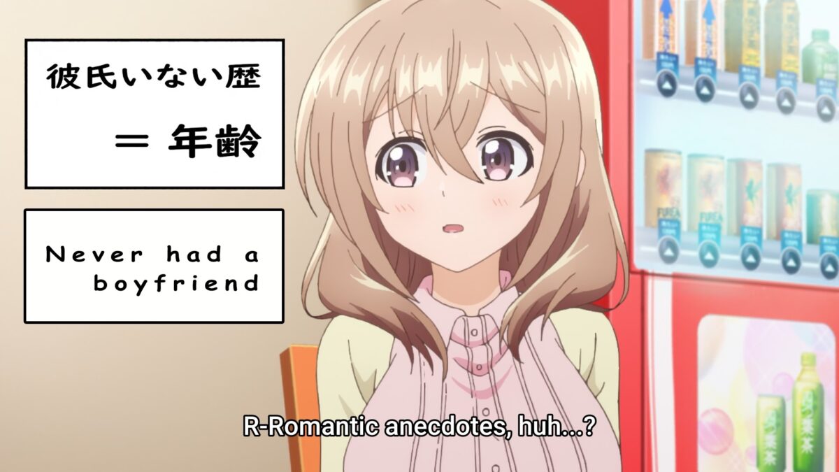 In one episode of My Tiny Senpai, Shiori, Takuma and Takuma’s childhood friend Chinatsu are asked to describe anecdotes from their own romantic histories. Because none of them had ever had a boyfriend/girlfriend, they were all unable to suggest anything.