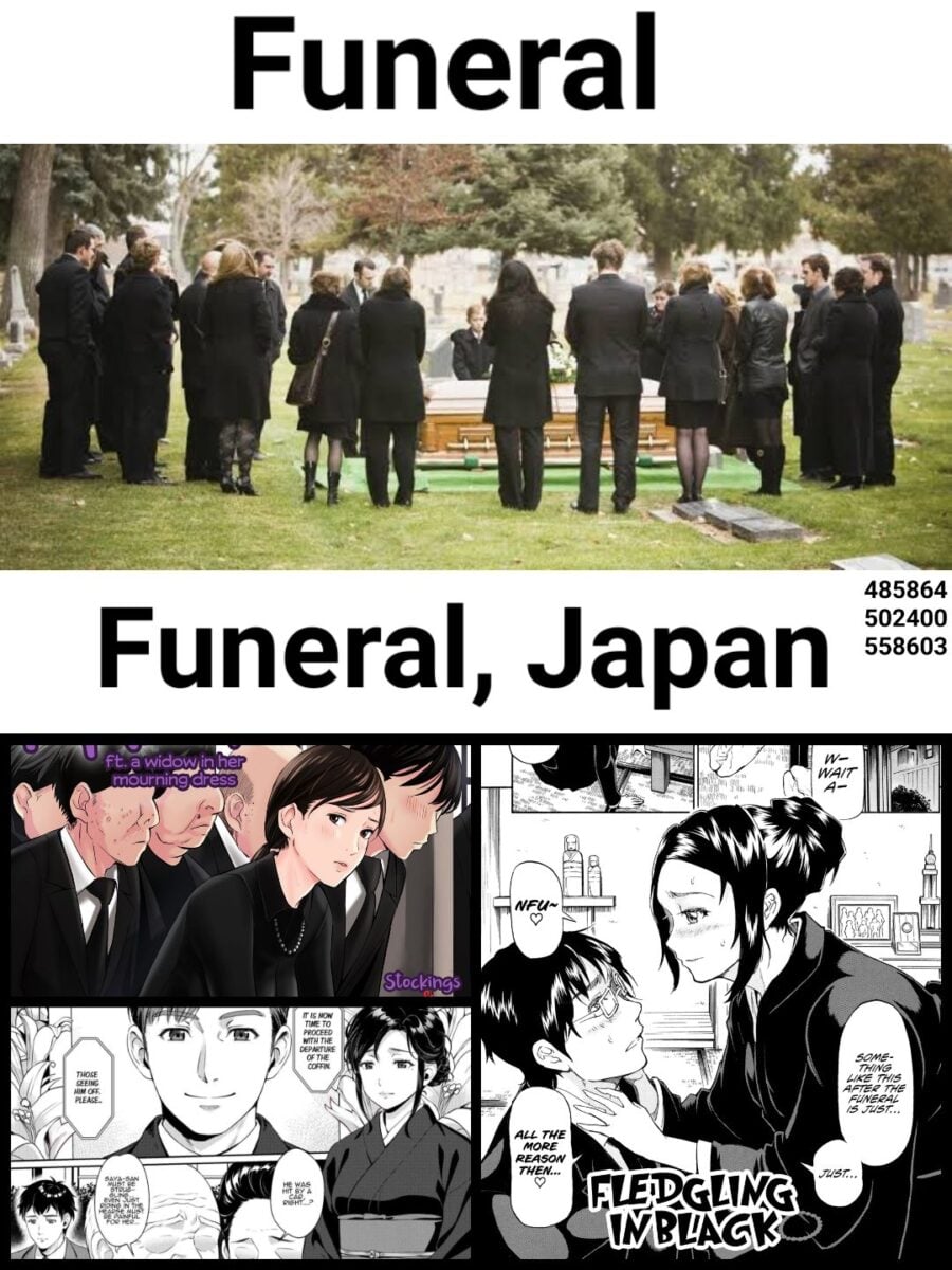 • The “final boss” of the genre is “funeral NTR.” Here, a wife enjoys sex with her lover while still wearing the black kimono of mourning for her husband, who has just died. Man, that’s dark!